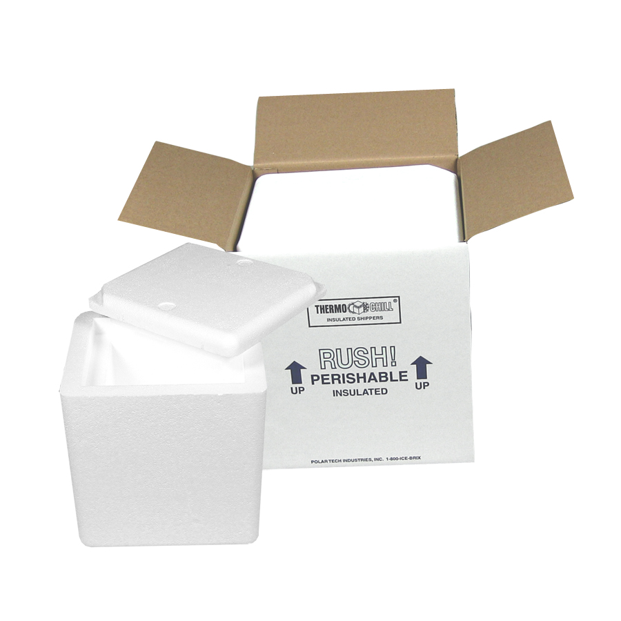 Polar Tech's 'ThermoChill' combo is offered as a completed set, with the foam container inserted in each shipping box. We take the guess work out of trying to find the correct shipping box by supplying them together, fully assembled. Our foam and box combo is typically taped on the bottom and only requires the end user to load the box with appropriate refrigerants, product, tape, and ship. Our superior quality offers durability, temperature control, and the box adds additional preprinted handling instructions, such as Rush Perishable and This End Up for carriers and recipients.