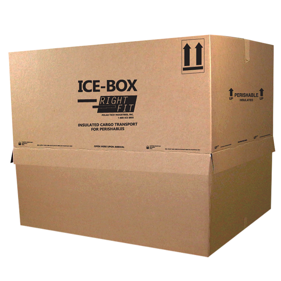ICE-BOX RIGHT FIT™ Insulated Cargo Transports Partial Telescoping (PT) Containers, outer carton for bulk shipments. Easy load design, expands taller to accommodate various heights. Sold as a complete 2 pieces box set. Receive PT knockdown (KD) boxes, assemble top & bottom pieces for your use.